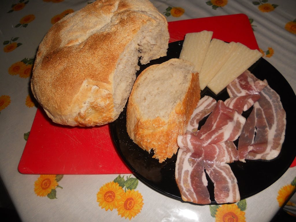 la sera prima ho impastato gli ingredienti come per un rinfresco e messo in una ciotola coperta..la lievitazione è avvenuta durante la notte, questa mattina ho fatto scivolare lentamente l'impasto lievitato un foglio di carta forno cosparso di semola e poi l'ho messo in una pentola di coccio..cosparso la superficie di semola ho coperto con pellicola e rimesso a lievitare ancora per 3 ore in forno tiepido..la cottura è avvenuta a 200° per 10 minuti e poi 20 minuti a 180°...